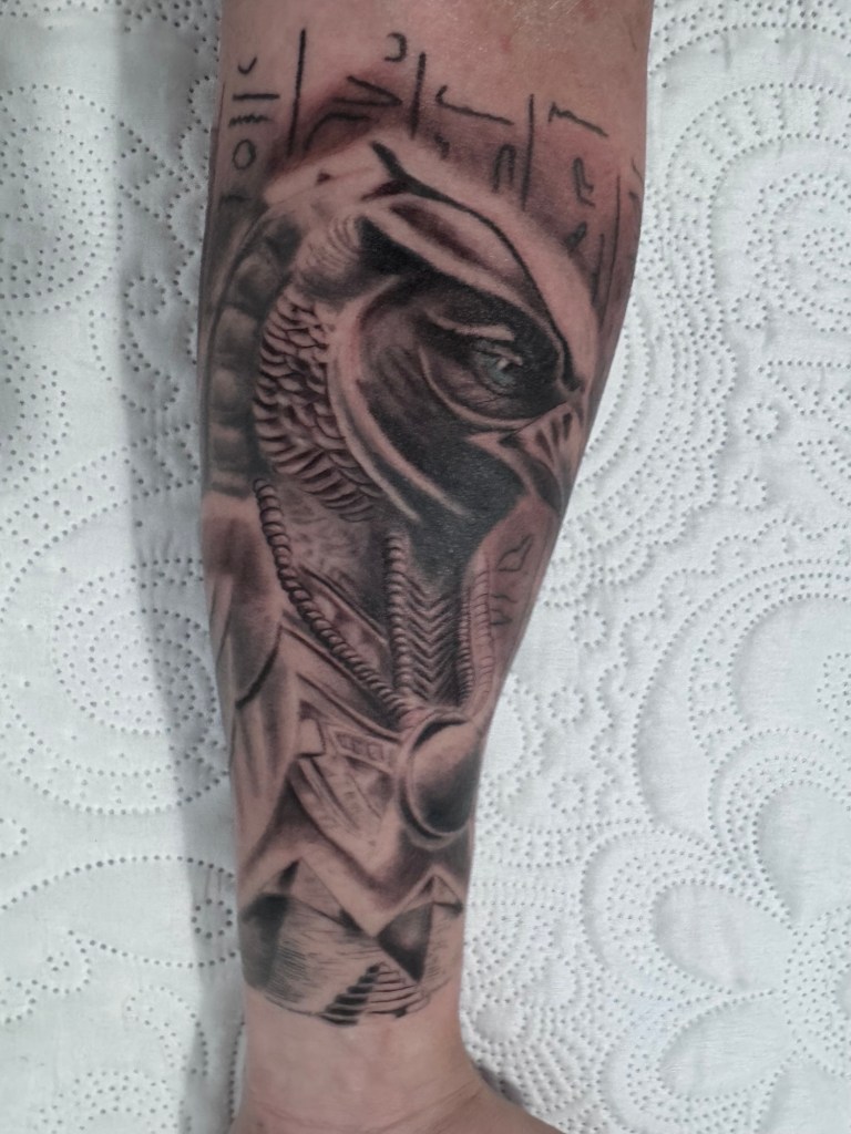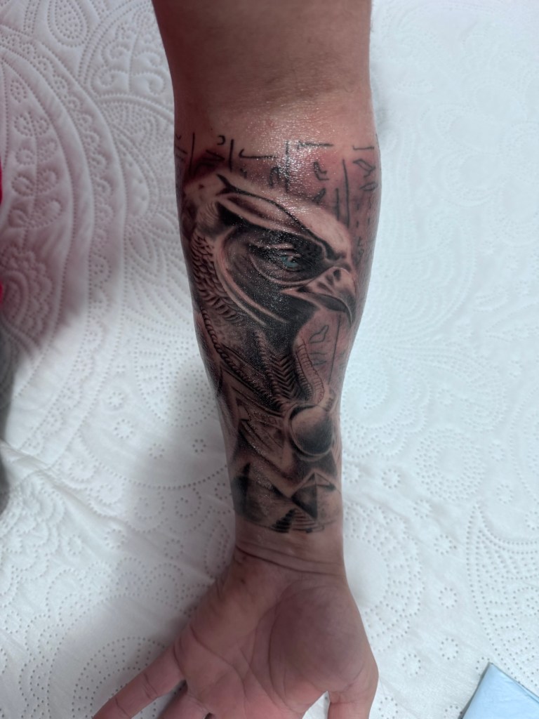 Si Anubis representa mi pasado, mis sombras y mis duelos, Horus es todo lo que quiero construir a partir de ahora. Es mi decisión de volar, de alzar la vista por encima de las ruinas y no quedarme anclado a lo que fue. Es el símbolo de mi renacimiento.